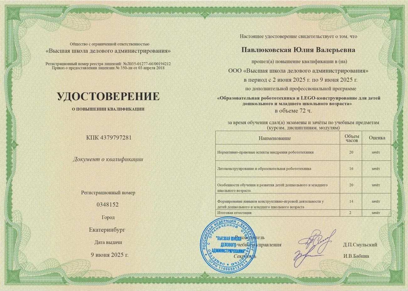 Павлюковская Юлия Валерьевна